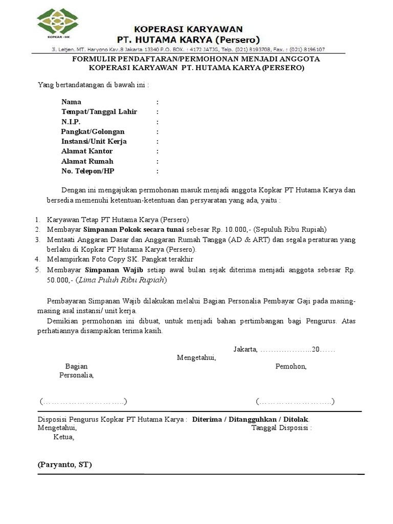 Koperasi pegawai pelabuhan indonesia iii. Hutama karya (persero) yang bertandatangan di bawah ini : Formulir pendaftaran anggota koperasi sauyunan jayanti cidaun. Yang bertanda tangan di bawah ini : Bantuan hibah dari pemerintah apbn apbd i apbd ii. Contoh iklan lowongan kerja yg singkat. Formulir pendaftaran/permohonan menjadi anggota koperasi karyawan pt. Contoh formulir pendaftaran berbagai keperluan kami akan memberikan contoh formulir pendaftaran dalam bentuk doc atau microsoft word baik itu formulir untuk daftar sebagai anggota siswa baru atau organisasi. Tempat/tanggal lahir formulir pendaftaran/permoho nan menjadi anggota. By adhe ii 14533 views. Jika kita menggunakan kertas untuk membuat formulir pendaftaran tentu saja membutuhkan biaya yang tidak sedikit apalagi jumlah pendaftar sangat banyak tentu saja formulir yang harus di siapkan juga harus sesuai dengan jumlah peserta yang ingin mendaftar. Formulir identitas anggota bentuk kerja sama operasi. Contoh formulir formulir pendaftaran calon anggota dewan pengawas lembaga penyiaran publik lokal (lppl) radio formulir pendaftaran institut koperasi indonesia calon mahasiswa program sarjana pengusaha mandiri melalui.