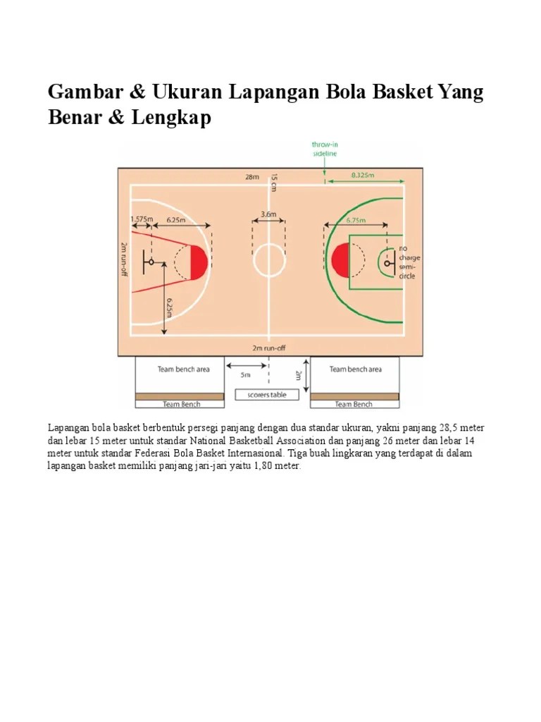 Ukuran gambar lapangan bola basket yang benar lengkap.